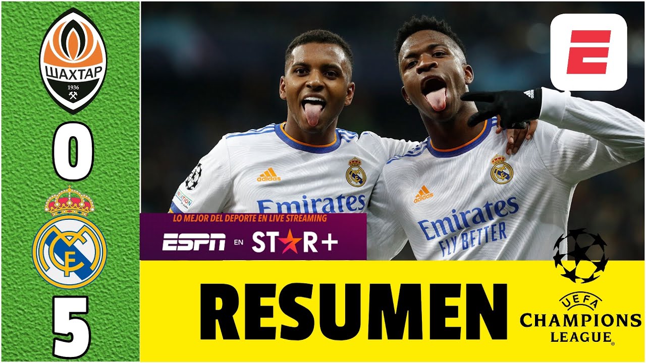 El resumen del Real Madrid vs. Los de Ancelotti se llevaron la victoria gracias a un doblete de Vinicius y los tantos de Benzema Rodrygo y un autogol de Kryvtsov. Marcador al momento goles en video y estadísticas minuto a minuto. Consulta las mejores jugadas y goles del partido entre Shakhtar 0-5 Real Madrid de Champions League 20212022.